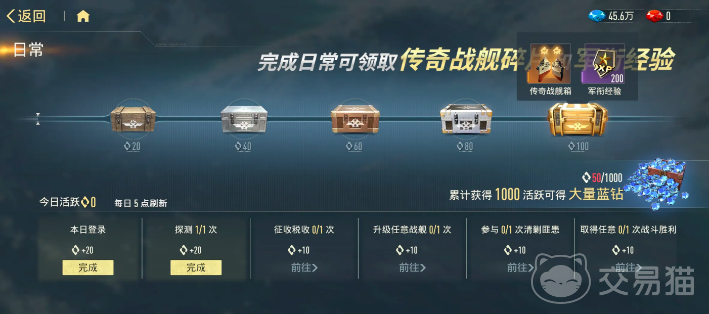 日常任务体系提供高频回馈。完成当日全部指定任务可累积活跃度,当活跃度达到100点时,除可领取传奇战舰碎片外,还将开启资源宝箱,内含蓝钻等核心养成材料,形成良性循环闭环。