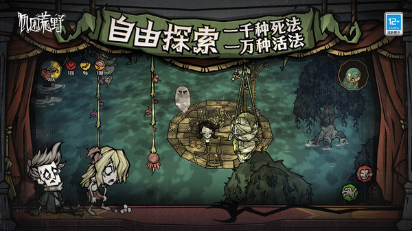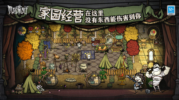 在继承基础上,《饥困荒野》并非简单移植,而是进行了结构性升级:新增多文明阵营设定与主线剧情章节,扩展生物图鉴并引入具备生态互动逻辑的新物种;构建家园建造与社交协作系统,支持玩家自定义角色外观与初始属性;原《饥荒》中的经典角色(如威尔逊、薇洛等)以高辨识度NPC身份回归,提供任务指引与世界叙事锚点,增强沉浸感与代入深度。