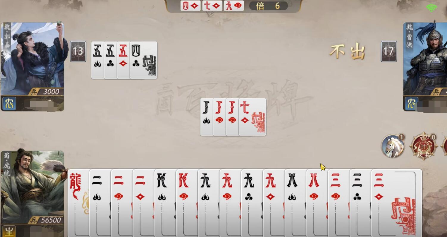 除武将外,特色功能牌亦丰富战术维度。迷夫人在手牌剩余8张时自动转化为万能牌,并可共享给队友,适合资源有限的新手或平民向配置;赤兔马为地主专属道具,打出五连顺子时可减免一张手牌消耗,显著提升出牌容错率与节奏掌控力。