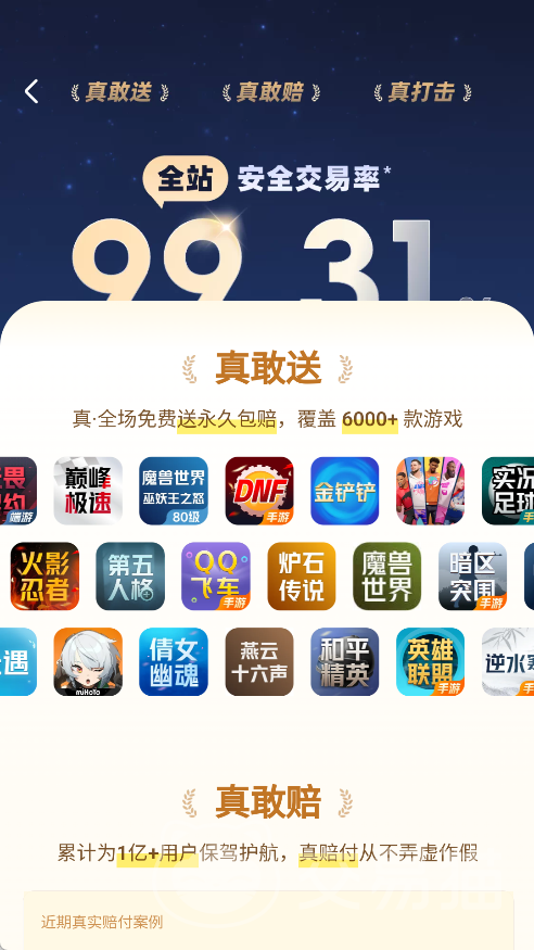 平台上的游戏特别全,目前已经覆盖了6000多款热门和经典手游。不管您想找哪类游戏,这里的选择空间都特别大有超过100万个账号在架销售,从新手号到顶级神号,基本都能找到。而且,这个数字每天都在持续更新。更重要的是已经累计服务了超7000万名玩家,能被这么多的用户所信任是平台最宝贵的财富更多不可多得的财富。