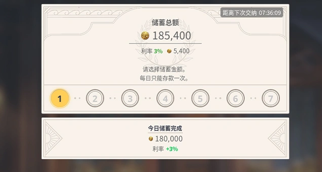 关于银行使用的优化建议:第一,避免将全部达克特用于贸易周转,应预留20%–40%作为银行存款基数,兼顾流动性与安全性;第二,储蓄操作宜连续完成7日周期,中途退出将导致当期利息清零,建议结合自身在线节奏规划启动时间;第三,在满足蓝钻储备前提下,优先选择蓝钻储蓄通道,以获取更高利率回报。
