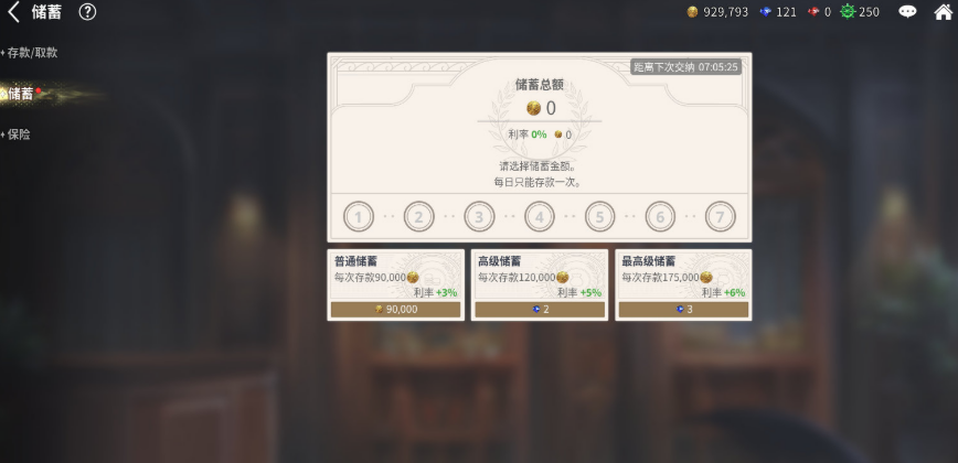 银行共提供三项核心服务:存款、储蓄与定额保险。其中“存款”虽操作简单,却是风险防控的第一道防线。海上航行充满不确定性——遭遇敌舰战败、船只受损维修、甚至突发风暴导致货物损毁,均可能造成即时资金损失。将部分达克特存入银行后,该笔资产即脱离船队流动体系,不受战斗或事件类扣除影响,有效保障本金安全。尤其对起步阶段资源有限的提督而言,合理分配现金与存款比例,是稳健发展的基础策略。
