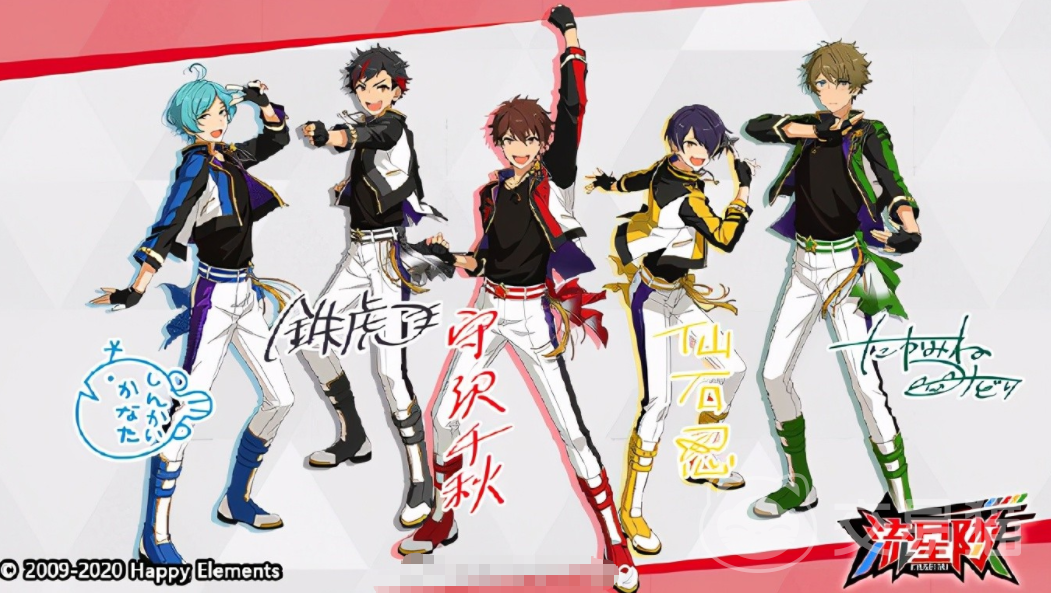 游戏内角色按所属事务所及理念划分为多个固定组合,各队拥有独立视觉体系、音乐定位与运营策略。其中,fine由天祥院英智领衔,强调专业性与团队协同,整体表现稳定均衡,主色调为象牙白;Trickstar以亲和力见长,舞台风格轻快富有感染力,橙色为其标志性色彩,适合综艺曝光与大众向广告合作;流星队主打高密度粉丝互动,成员多具运动感与童趣气质,推荐参与体育推广或少儿类节目主持,其视觉系统融合五种主色,体现多元活力。