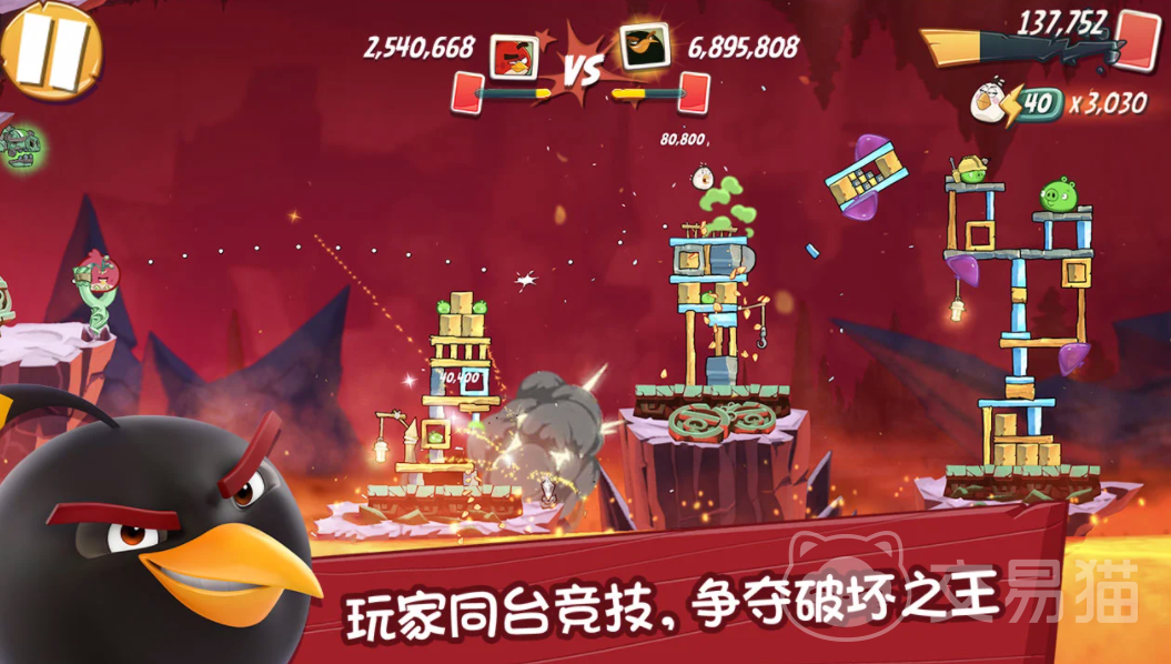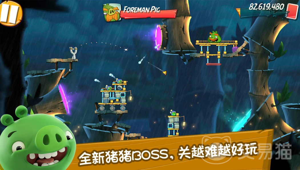 绿皮猪持续作为核心目标出现在关卡右侧,每群猪均依托不同结构建筑布防。玩家通过滑动屏幕控制弹弓蓄力时长与发射角度,结合各小鸟固有属性(如爆炸、分裂、加速等)制定策略。例如红鸟强调精准打击,蓝鸟可分身穿透,黄鸟具备高速突进能力——合理轮换出战顺序与释放时机,是突破高难度Boss的关键。