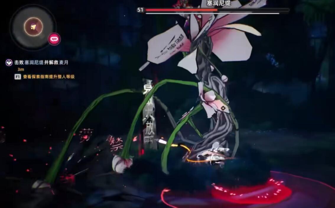 该Boss首次遭遇于解救麦月的主线剧情中——当玩家首次踏入被藤蔓侵蚀、空间异变的区域时,巨型花妖即现身迎战。与其他具备位移能力或多阶段狂暴机制的Boss不同,塞润尼缇全程处于固定位置,不进行移动,仅通过预判明显的技能前摇释放大范围攻击。这一设计使其成为训练走位反应与团队站位管理的理想对象。