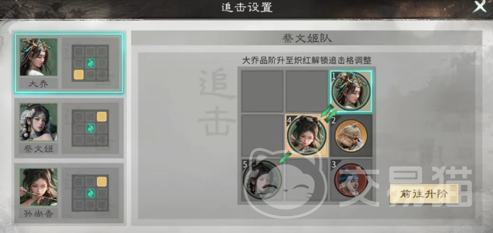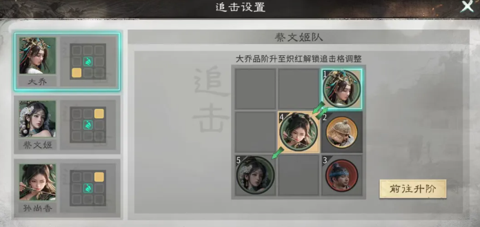 若玩家愿意进行适度资源投入,可升级为孙尚香、大乔、蔡文姬构成的控制流开荒体系。其中蔡文姬沿用免费获取路径,大乔与孙尚香虽需参与特定活动或完成阶段性任务获取,但综合性价比突出。大乔技能配置以控场优先:主动技能选用【反间计】,命中后附带混乱效果,打乱敌方行动逻辑;追击技能配置【两面三刀】,兼顾单体伤害与重伤附加,削弱敌方兵力恢复能力;被动技能选择【齐射阵列】,在输出同时提升己方增伤并削减敌方防御数值。