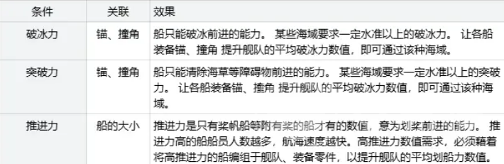 破冰力与突破力属于专项通行能力,不可通过常规属性转化获得。前者专用于应对极地冰层阻隔,后者则针对海草缠绕类地形。两项数值均依赖装备驱动:锚具与撞角均可同步提升二者,且舰队最终生效值为全队船只对应属性的算术平均值。这意味着单舰堆叠无意义,必须确保每艘参航舰船均达到最低阈值,方能稳定通过限定区域。
