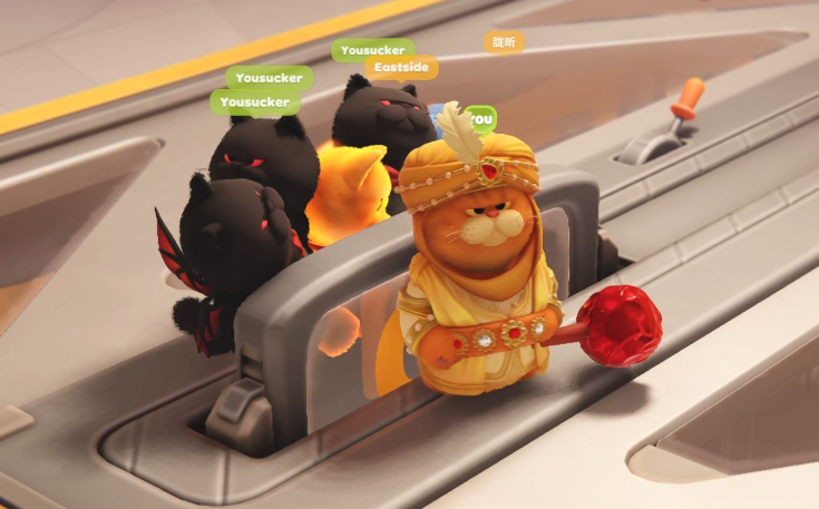 进入游戏后,玩家可从多种拟人化小动物角色中挑选一位作为操控主体,包括小猫、小狗等经典形象。这些角色设计融合了卡通夸张风格,配有丰富多样的装饰元素,整体视觉表现清新活泼。角色动作反馈鲜明,支持跳跃、冲撞、投掷等多种交互操作,强化了实时对抗中的趣味性与临场感。