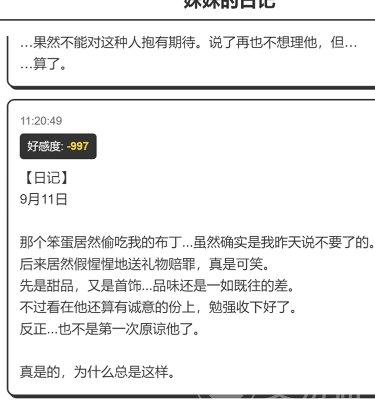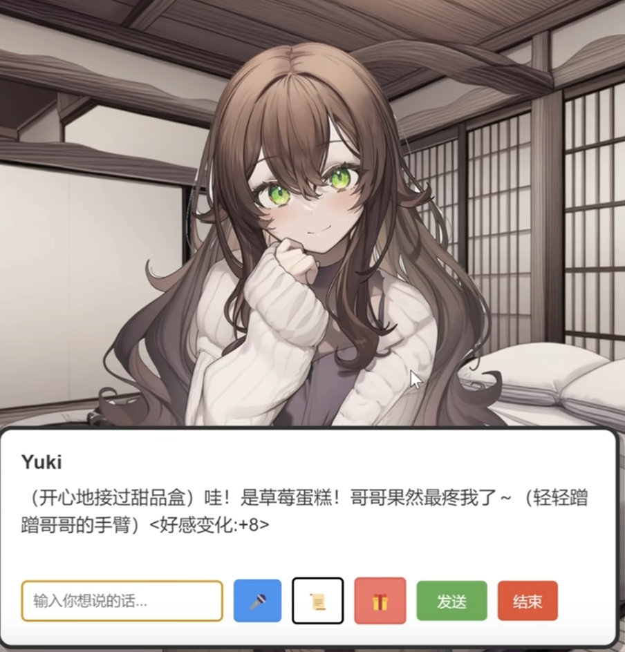 好感度变化具备长期行为记忆机制。持续投喂同类礼物会推动Yuki人格演化,例如高频赠送甜点可能诱发傲娇或病娇倾向,该过程不可逆且直接影响后续剧情走向。所有互动均同步写入Yuki日记模块,完整记录每次赠礼的时间、物品、数值变动及对应事件描述,为玩家提供可回溯的情感成长图谱。