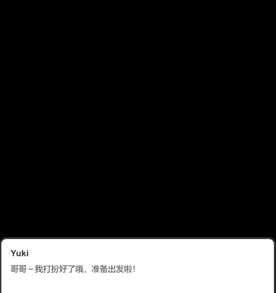 旅游功能入口位于游戏主界面右侧的功能导航栏中,点击“旅游”按钮即可唤出目的地选择面板。当前已实装的可选地点为温泉小镇,其背景设定为一处远离喧嚣的静谧疗愈型聚落,整体氛围契合游戏整体“暖系治愈”的叙事基调。选定后自动进入行程准备阶段,Yuki将以语音+文字形式呈现即时反应:“哥哥~我打扮好了,出发啦~!”,标志着本次旅行正式启程。