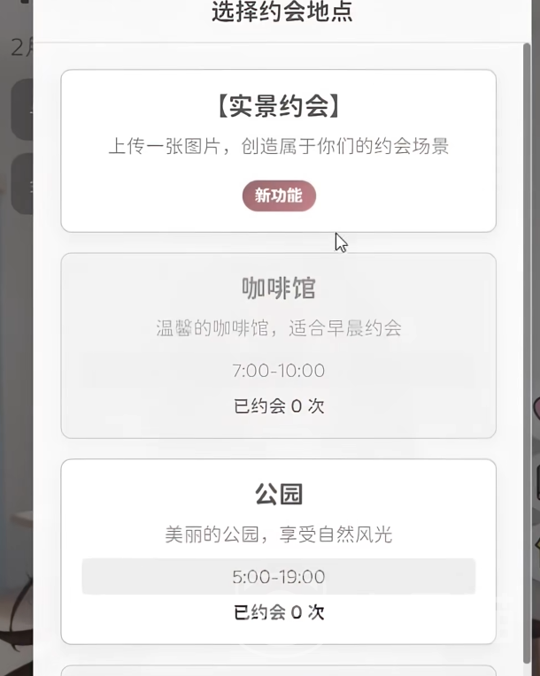实景约会系统打破传统虚拟边界,支持玩家上传真实场景照片作为约会背景。无论海边、街道还是校园取景,角色均会基于图像内容生成即时环境评价与肢体反应,实现高度个性化的跨次元共处体验。该功能每日可使用一次,是强化情感联结的重要实践路径。