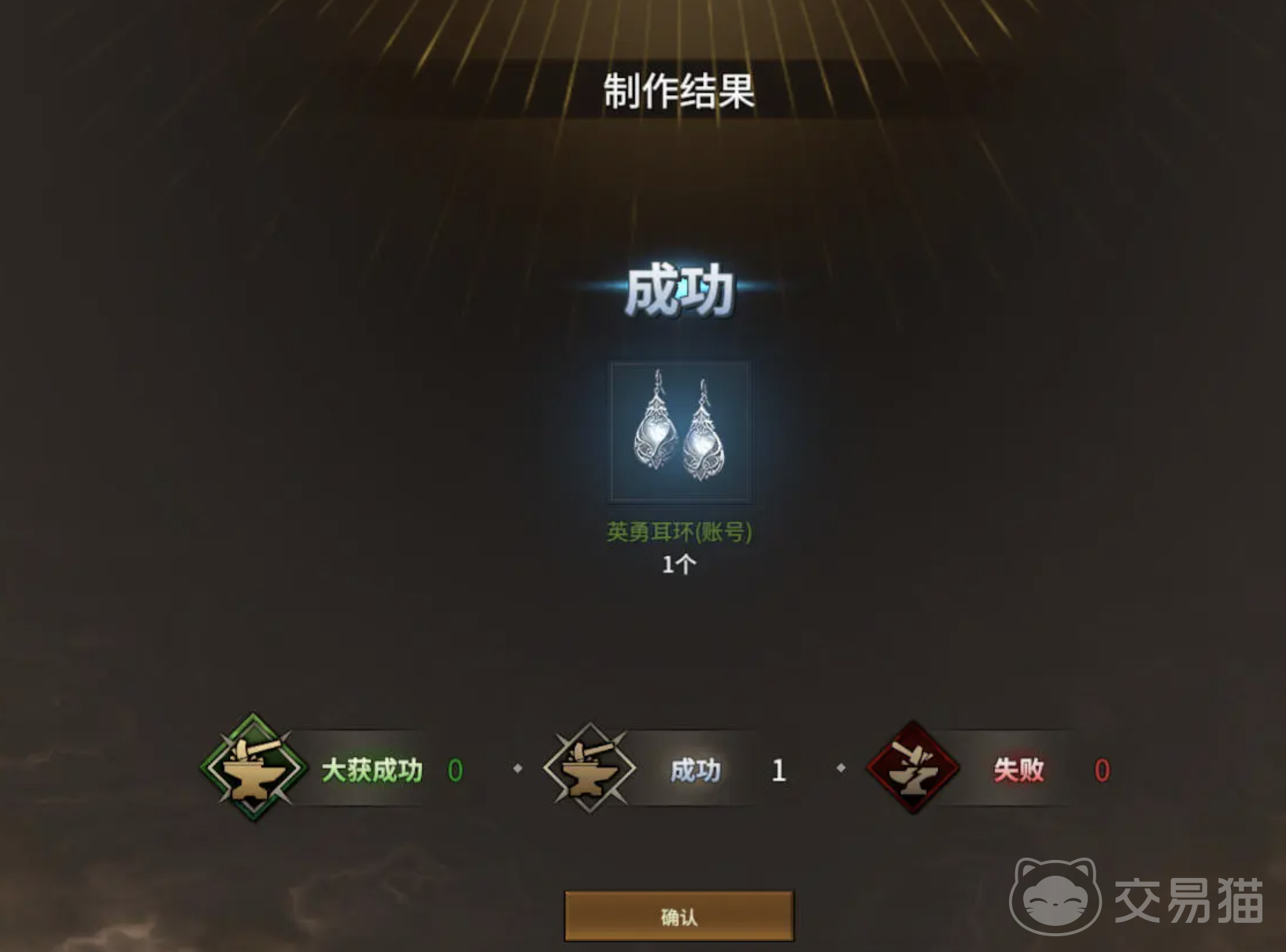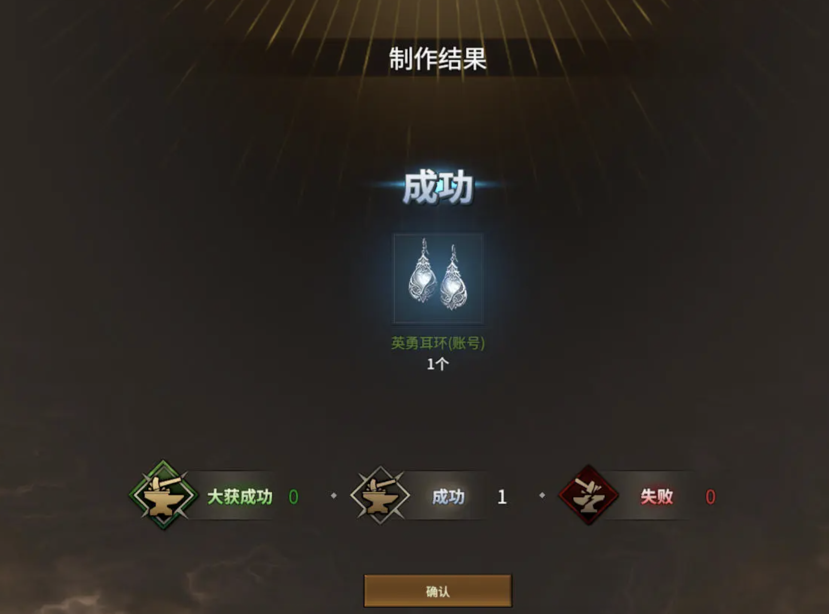 制作结果存在三种判定机制:失败、成功、大成功。若判定为失败,所有已投入材料将被完全消耗,且不产出任何物品;若判定为成功,则生成一件绑定装备,仅限当前账号使用,不可交易;唯有触发“大成功”机制,方可产出一件非绑定装备,既可用于自身战力提升,亦可在游戏内交易行自由上架出售,转化为稳定金币收益。