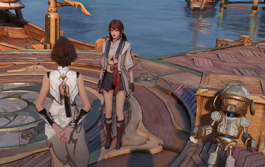 完成首轮巡览后,主角返回东方曜所在区域。因其临时接获夫子委派任务,引导职责转交西施执行。后者将带领玩家进入系统化教学阶段——此阶段覆盖基础操作、战斗逻辑与资源管理等核心机制。首处教学场景设于春溪原,此处首次激活“流”的具象化能力:玩家可自由切换形态,将本源之力转化为不同制式武器,实现战术适配。