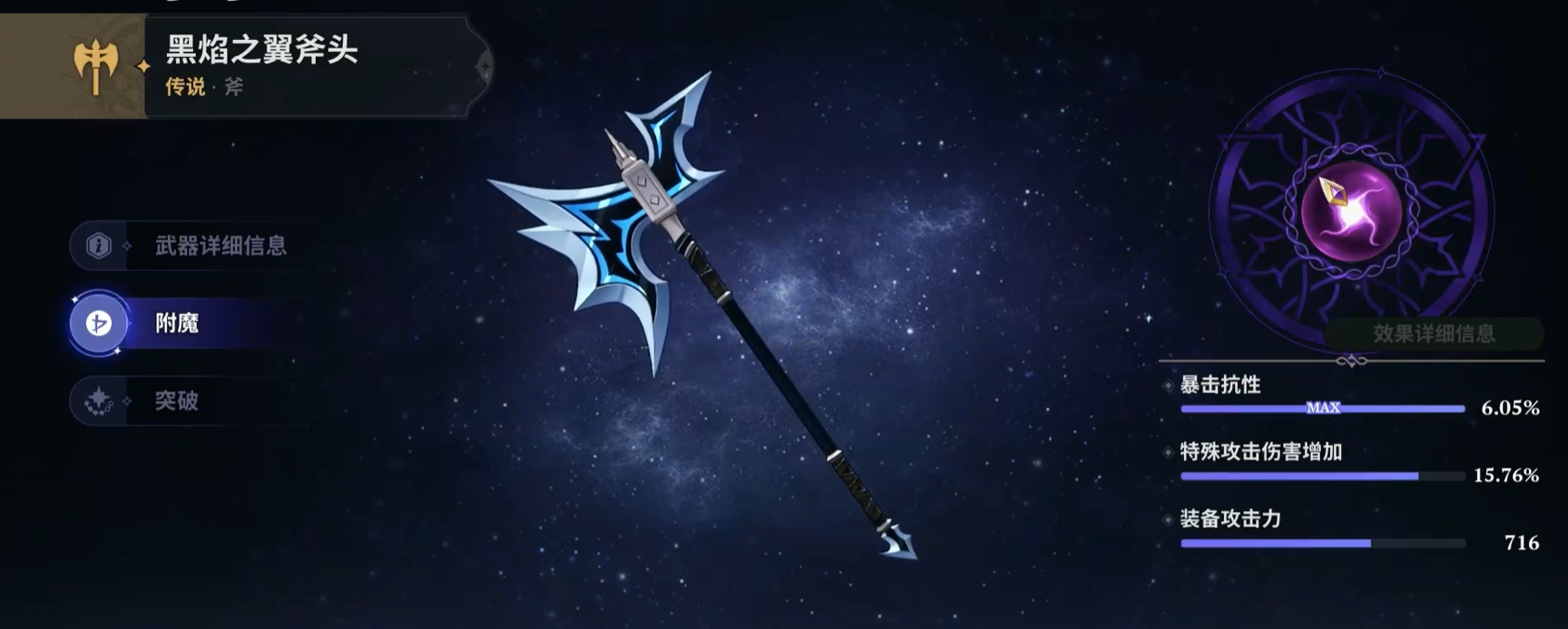 偏好瞬时爆发与操作快感的玩家,黑焰套装具备不可替代性。该套装攻击加成评级为S级;当主武器黑焰之翼斧头触发爆发技能时,角色将获得持续20秒的24%攻击力提升与20%暴击率加成。这一增益设计高度贴合梅利奥达斯等依赖高频技能循环的角色机制,可在短时间内实现伤害峰值跃升。相较之下,不屈守护套装侧重防御维度,在角色生命值处于低位时提供高额格挡率与格挡防御,专为坦克型职业量身打造。