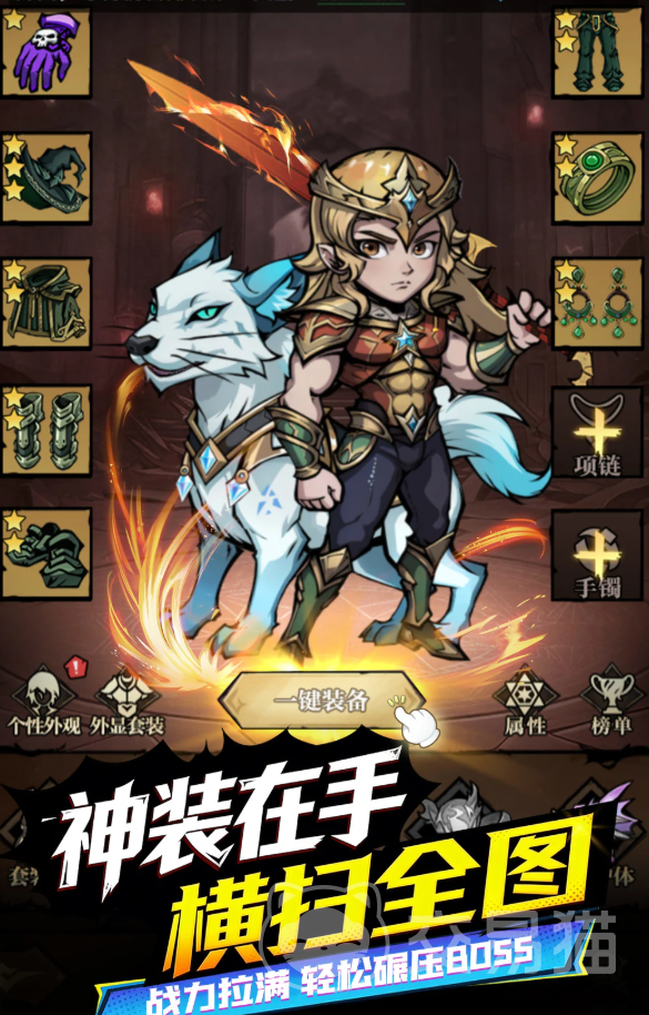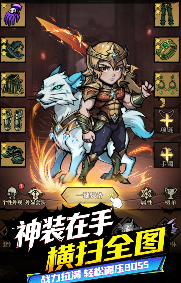 游戏采用全屏即时战斗机制,打击感强、节奏紧凑。主线推进与副本挑战是主要资源获取路径,金币、强化材料等可通过反复刷取稳定积累。内置挂机系统支持离线收益,降低日常负担。角色成长体系涵盖神器锻造、神宠协同、技能升阶等多维养成模块,助力战力快速跃升。