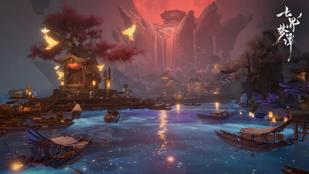 游戏世界观横跨七大异域界域,涵盖山海经体系延伸的奇观地貌与原创生灵生态。玩家可在云渊、玄冥、青丘、归墟等不同界域间自由穿行,探索隐藏剧情线索、触发随机奇遇事件,并解锁散落于各处的独特场景彩蛋。