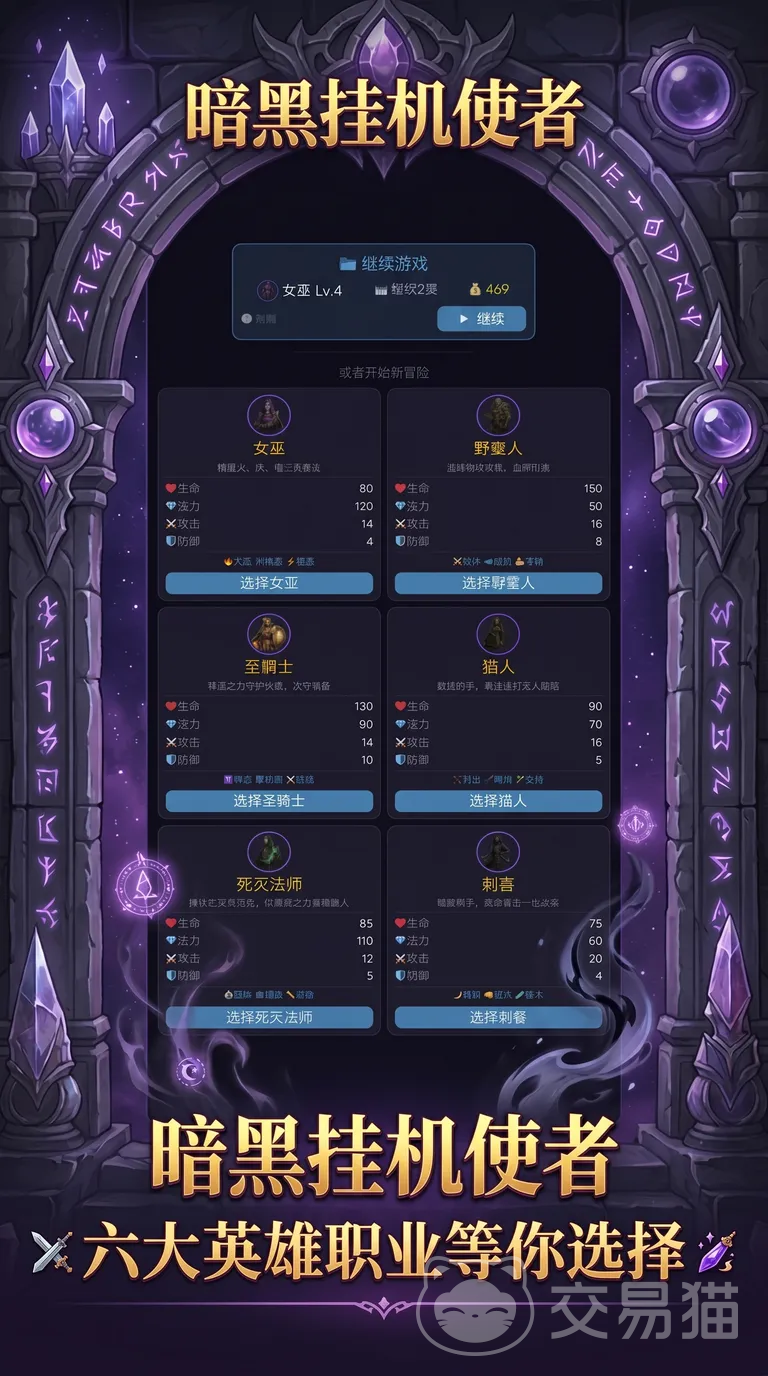 游戏采用经典放置类RPG框架,开局提供战士、法师、游侠、牧师、刺客、召唤师六大初始职业。每种职业均拥有独立属性成长曲线与专属技能解锁路径。玩家需带领角色逐层探索多维塔楼副本,各层空间结构随机生成,怪物配置随层数提升呈阶梯式强化。通关深层关卡依赖角色等级、装备精炼度及宠物协同战力三重维度的持续投入。