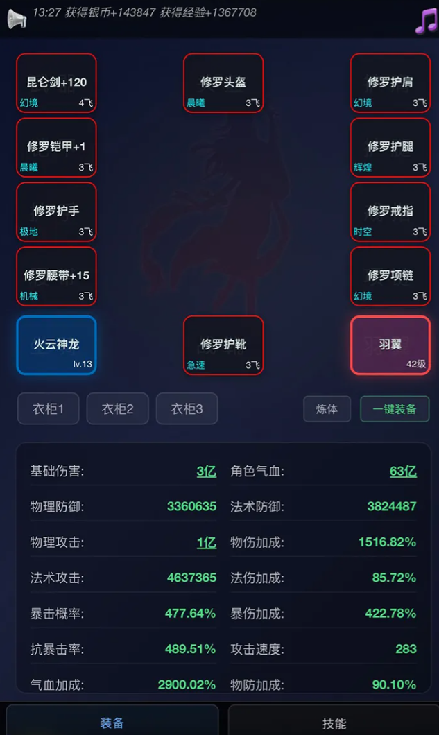 当前测试版本已开放全部核心玩法模块,包括装备精炼、功法参悟、灵兽契约与四象神兽养成系统。玩家可通过强化攻击、防御、暴击率、闪避率、生命吸取等基础属性,自由搭配个性化成长路线,例如高爆发暴击流、极限生存闪避流等差异化流派。