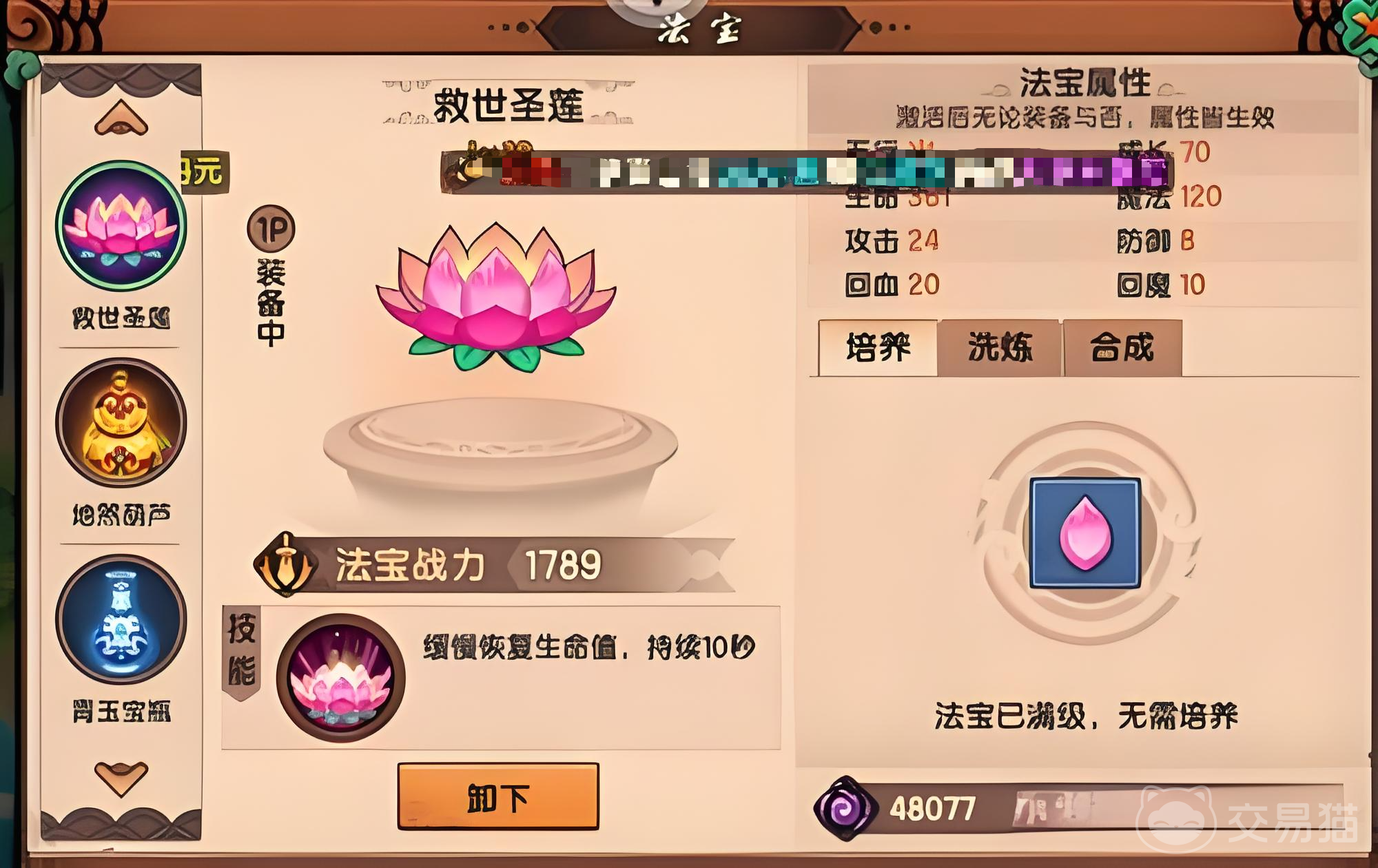 除地煞葫芦外,游戏内另五件主流法宝为白霜镜、救世圣莲、天煞古剑、罗刹妖伞与青玉宝瓶。其中白霜镜与救世圣莲同属火属性,二者成长值突出,实战表现优异;获取地点分别为花果山与鬼门关,与地煞葫芦形成地理联动,便于玩家集中规划刷图路线。