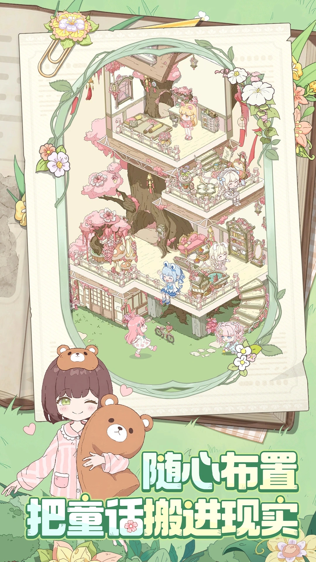 游戏独创的“童话转化系统”是其核心体验之一:玩家通过种植获取花材资源,投入转化系统后,可生成家具、微缩场景等装饰物件;所有产出物品均具备拟人化交互能力,能主动对话、表达情绪,助力玩家打造个性化的沉浸式童话空间。