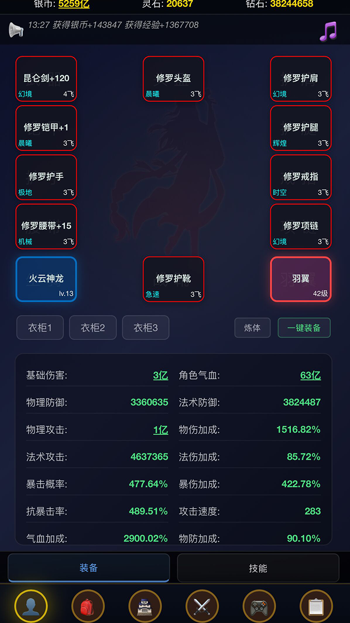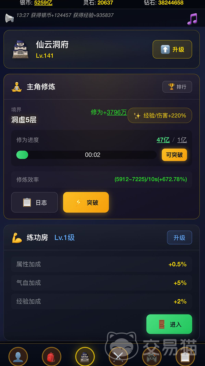战斗表现兼具效率与张力:采用3×3网格化怪物布局,支持全自动刷怪与一键秒杀,大幅降低操作负担;暴击特效、亿级伤害数字、粒子光效层层叠加,带来强烈视觉冲击与即时成就感。该机制使游戏节奏张弛有度——忙碌时段依赖离线挂机稳扎稳打,空闲时刻则可投入高密度战斗体验,真正实现生活与修仙的无缝衔接。