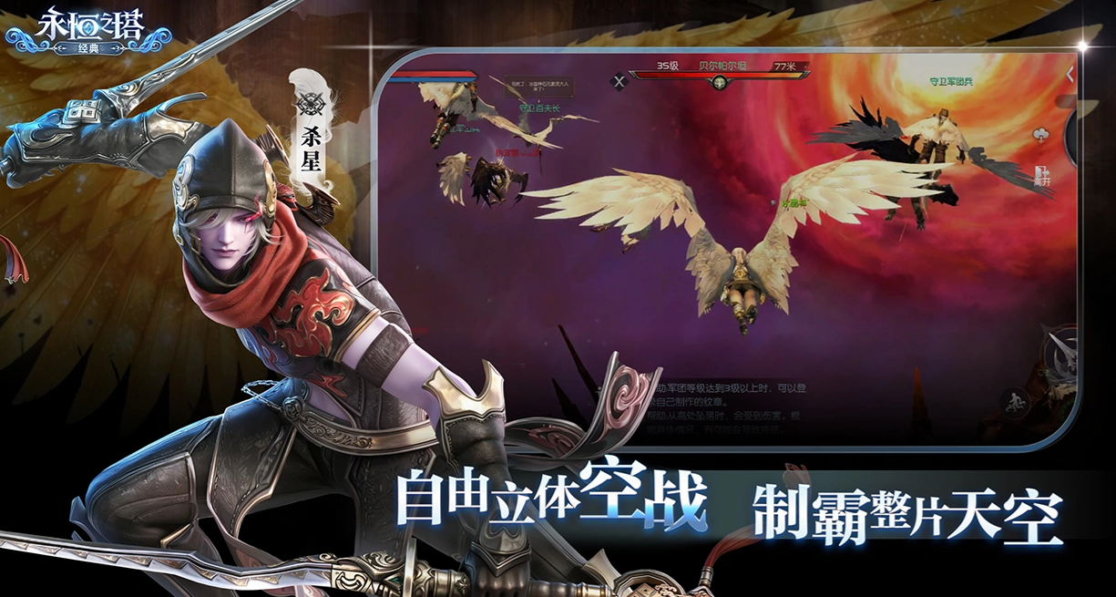 《永恒之塔:经典》以恢弘魔幻史诗为基底,构建天族、魔族、龙族三方不可调和的阵营对立格局。自由飞行系统作为核心机制之一,在等级达标并完成转职后解锁专属阵营羽翼。飞行不仅承担位移功能,更深度融入战斗逻辑:在深渊等开放空域中,玩家需统筹滞空时长、飞行药剂消耗节奏,并在三维空间内完成战术迂回、集火压制与技能规避,形成区别于传统地面MMO的立体对抗体验。