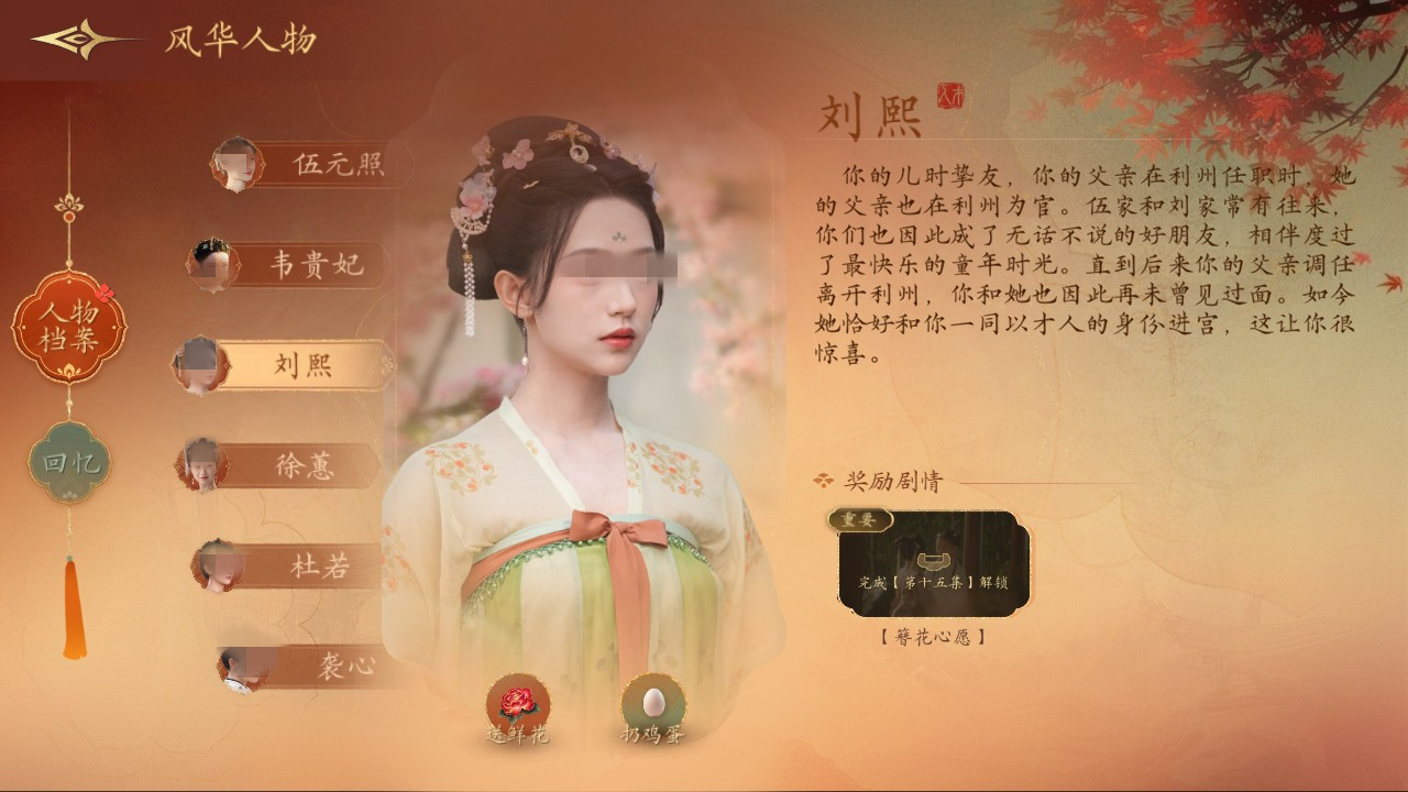 游戏核心机制围绕三大动态属性展开:权谋、人心、健康。玩家每一次对话措辞、服饰搭配、宴席座次选择,均可能触发不同事件链,影响属性数值变化甚至导致角色退场。任务系统涵盖送礼、密谈、情报传递等多元行为,属性成长直接关联生存概率与剧情分支广度。“风华人物”系统则提供深度社交维度——查阅人物档案、承接隐秘委托、维系朝堂关系网,均可在危机时刻扭转局势。