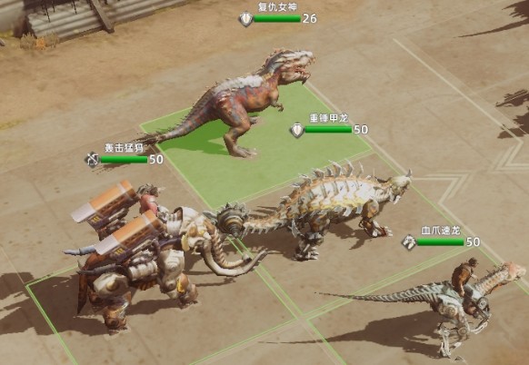 阵容逻辑:【复仇女神】承担前排承伤与核心输出双重角色,护盾机制有效保障队伍容错率;【轰击猛犸】与【血爪速龙】负责中后排持续压制;【重锤甲龙】专注抗线与控制衔接,构建攻守均衡的推进体系。