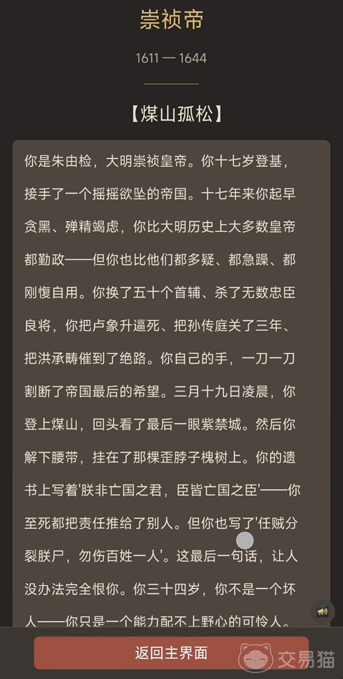 综上所述,这是一款兼具历史厚重感与硬核生存逻辑的模拟作品。它不承诺轻松过关,但每一次失败都在积累对明末社会肌理的理解;不提供万能公式,却用严谨的数值模型与动态反馈,让每个选择都掷地有声。若你渴望在虚拟时空中直面真实的历史困境,那么这款游戏值得投入时间深入体验。