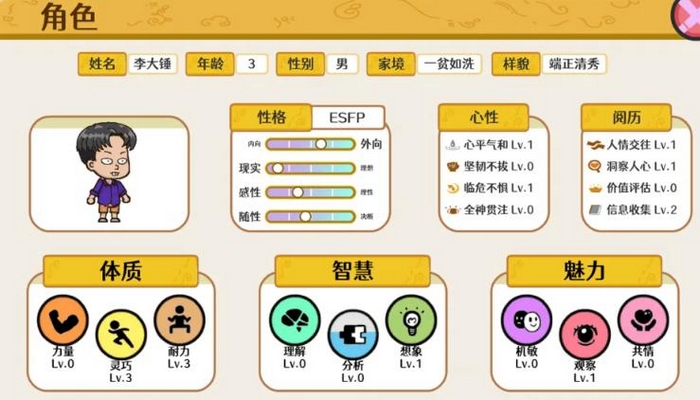 游戏采用真实年龄演进模型,玩家将从3岁幼童身份起始,在随机生成的家庭背景中逐步成长至成年。全流程被科学划分为9个关键人生阶段,每个阶段均设有独立目标体系、事件触发逻辑与成长反馈路径,彻底规避旧版中因时间流速过快导致的操作压迫感与数值遗漏风险。