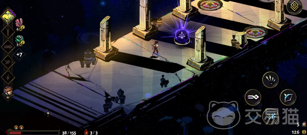 本作完整继承了PC端标志性的Roguelike结构与深度养成体系。六把基础武器各具特性:冥界之刃、永恒之矛、混沌之盾、索心弓、双子之拳、狮鹫坚炮,分别对应近战突进、中距离投掷、格挡反制、远程压制、高频率连击与范围轰炸等差异化战斗逻辑。