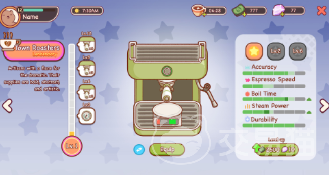 玩家从一家仅有基础设备的小铺起步,逐步搭建起完整的咖啡事业:采购生豆、烘焙调配、研磨萃取、出品服务、设备迭代、空间改造……每个环节均需自主决策。资金规划、产能平衡、升级优先级等策略性判断贯穿始终,而非简单点击即可推进。随着经营深入,店铺外观由素净小屋演变为风格鲜明的主题空间,这种可视化的成长反馈,带来扎实而持久的满足感。