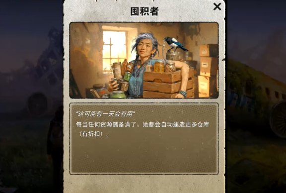 囤积者强化物资管理能力,资源储存上限提升40%,食物与水源腐败周期延长,并可周期性生成少量体力,构建更稳健的后勤缓冲体系。