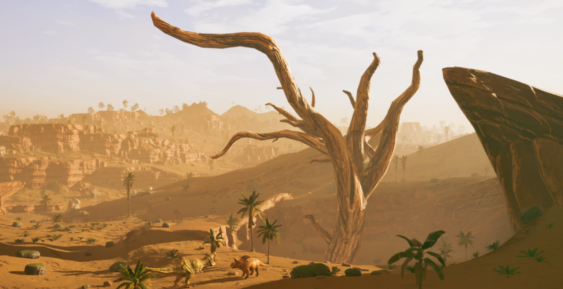 龙岛异兽起源以高度还原的史前生态为背景,构建出兼具沉浸感与策略深度的开放世界生存体验。游戏采用次世代渲染技术,打造出光影细腻、植被逼真、地貌多变的动态环境,配合恐龙生态行为系统,让每一场遭遇都充满真实张力与视觉冲击。