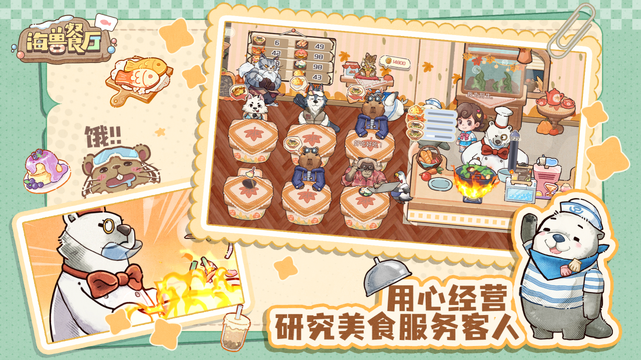 玩法层面突破传统模拟经营边界,构建“三轨并行”结构:以餐厅运营为基底,叠加动态地图探索机制与海兽伙伴成长系统。玩家不仅需优化服务动线、研发特色菜品,还将深入未知海域解锁新区域、收集稀有生物,并通过互动培养建立情感联结,显著提升内容纵深与长期留存价值。