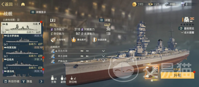 战舰升星上限为5星,各阶段所需碎片数量呈阶梯式增长,其中5星突破消耗最大,但带来的综合战力增幅亦最为显著。5星达成后,不仅属性全面提升,还将激活全部武器槽位,使战舰进入完全体作战形态。此时,根据战舰定位(驱逐、巡洋、战列、航母等),其核心属性加成方向(如回避率、暴击强度、护甲穿透、支援范围等)将充分显现,真正释放出该舰种在战术体系中的不可替代价值。