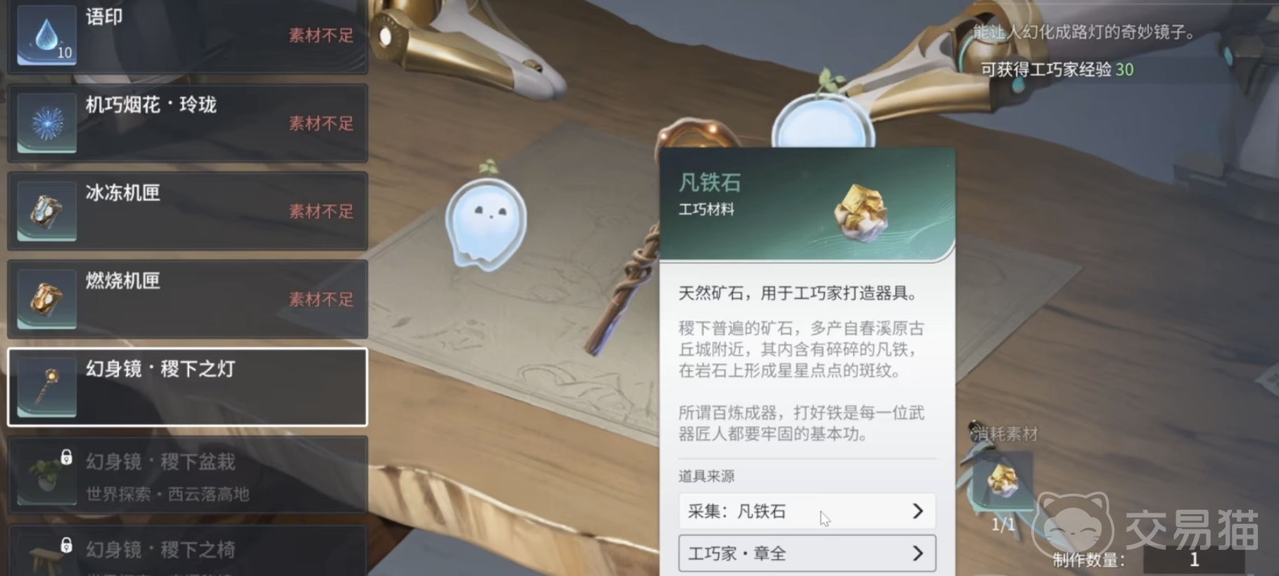 所需资源可通过多种方式稳定获取:野外采集铁矿、原木、晶石,开启宝箱随机掉落,或通过家园系统周期性产出。采集过程无缝融入日常探索动线,无需专程刷图。建议优先将天赋升至3级与8级,以获得载具提速与坠落减伤的质变体验。日常制作聚焦钩锁与滑翔翼两类高频刚需道具,无需大量囤积。若搭配百草学与垂钓职业,三者协同可形成闭环资源循环,尤其适合零充值玩家构建可持续发展的生存体系。