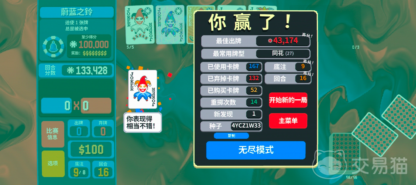 游戏采用“底注—盲注”双阶段关卡结构,每轮挑战需在资源约束下完成卡组构建。区别于常见 Roguelike 卡牌游戏的线性成长路径,《小丑牌Balatro》允许玩家动态增删卡牌、修改卡组权重,甚至重置部分效果,使流派拓展空间显著扩大。战斗过程高度凝练,仅以“筹码×倍率”作为唯一结算维度,所有胜负结果均可量化验证,确保策略反馈即时且公正。