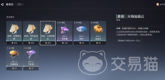 需注意,“火烧仙菇云”的食谱并非通过主线或日常任务发放,而是需前往指定NPC处购买。具体位置为稷下群山区域内的潭影营地。玩家打开大地图后可直接搜索“潭影营地”进行定位,营地标识清晰,沿主干道前行即可抵达。营地内可找到NPC“余欢”——他是肴馔家专属食谱商人,提供包括本料理在内的多类烹饪图谱。与其对话后,仅需消耗基础游戏货币即可购得该食谱,价格亲民,无需消耗稀有资源。购买后进入背包界面学习食谱,再前往烹饪专用场景“食不厌精”,在料理列表中定位“火烧仙菇云”,即可查看所需全部材料清单。