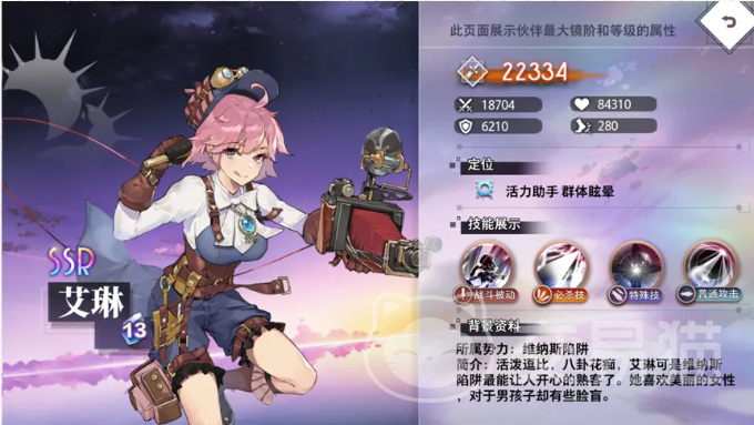 梦的第七章新角色艾琳强度解析:是否值得抽取?艾琳隶属于维纳斯陷阱阵营,定位为辅助型法师,角色设定灵动活泼,具备鲜明的喜剧风格与亲和力,是该阵营中人气较高的常驻角色之一。其立绘设计偏向俏皮可爱路线,引发玩家广泛关注。本文将围绕她的技能机制、实战定位与队伍适配性展开客观分析。