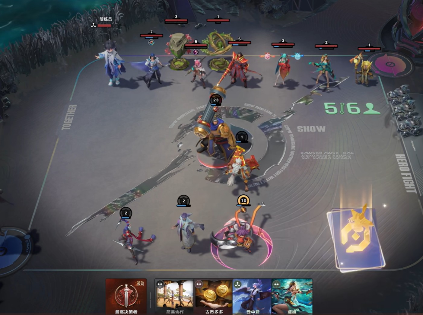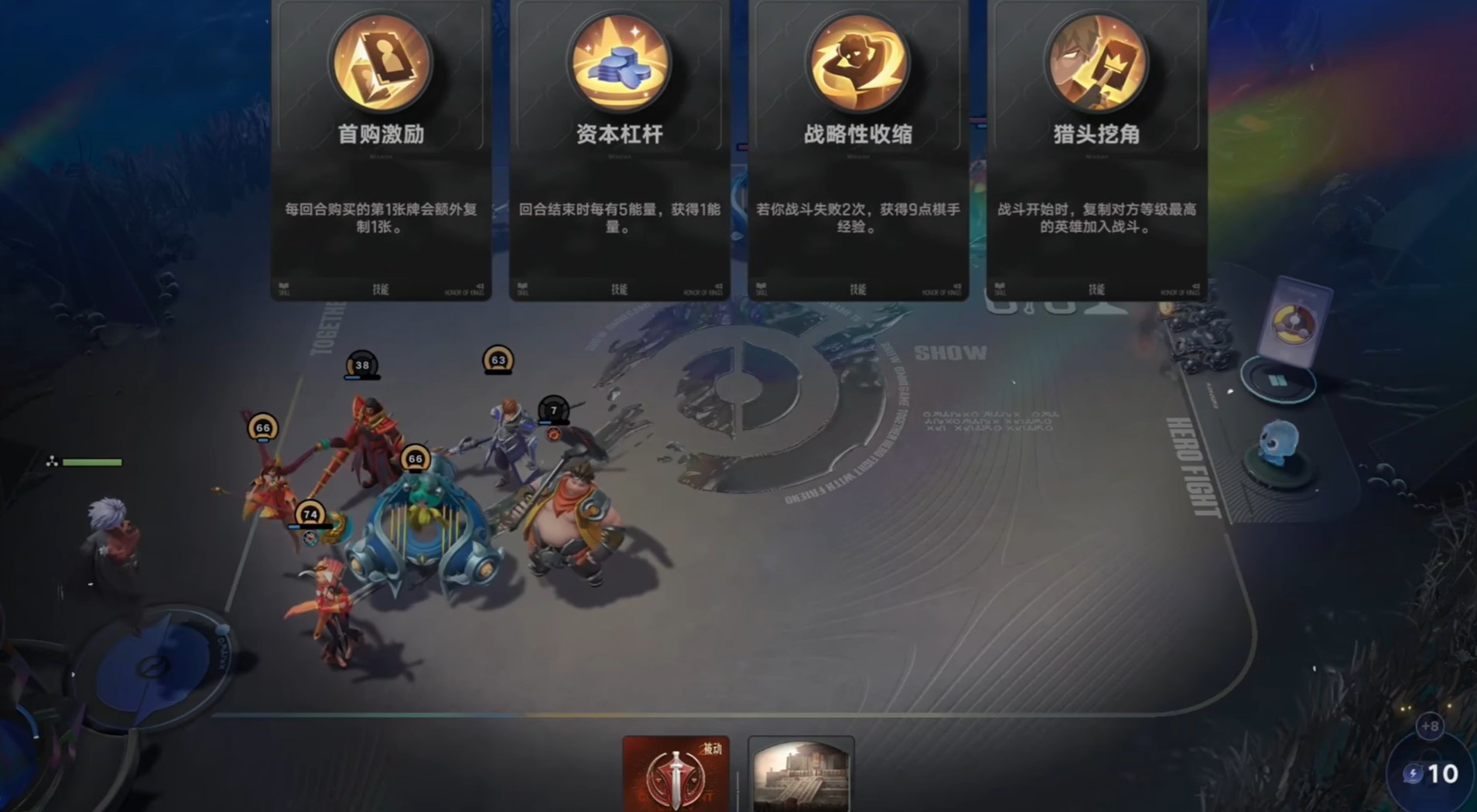 当嬴律升至六级时,将解锁终极机制——三选一专属强化方案。所选效果对全体玩家同步生效,同时嬴律自身还将获得额外加成。实战中需结合首张决策牌的属性倾向制定前期策略:若增益偏向资源积累,可优先选用高成长性但费用较高的英雄构建后期体系;若侧重生存稳定性,则建议采用低费高性价比英雄稳住血线,待中后期再完成阵容迭代。