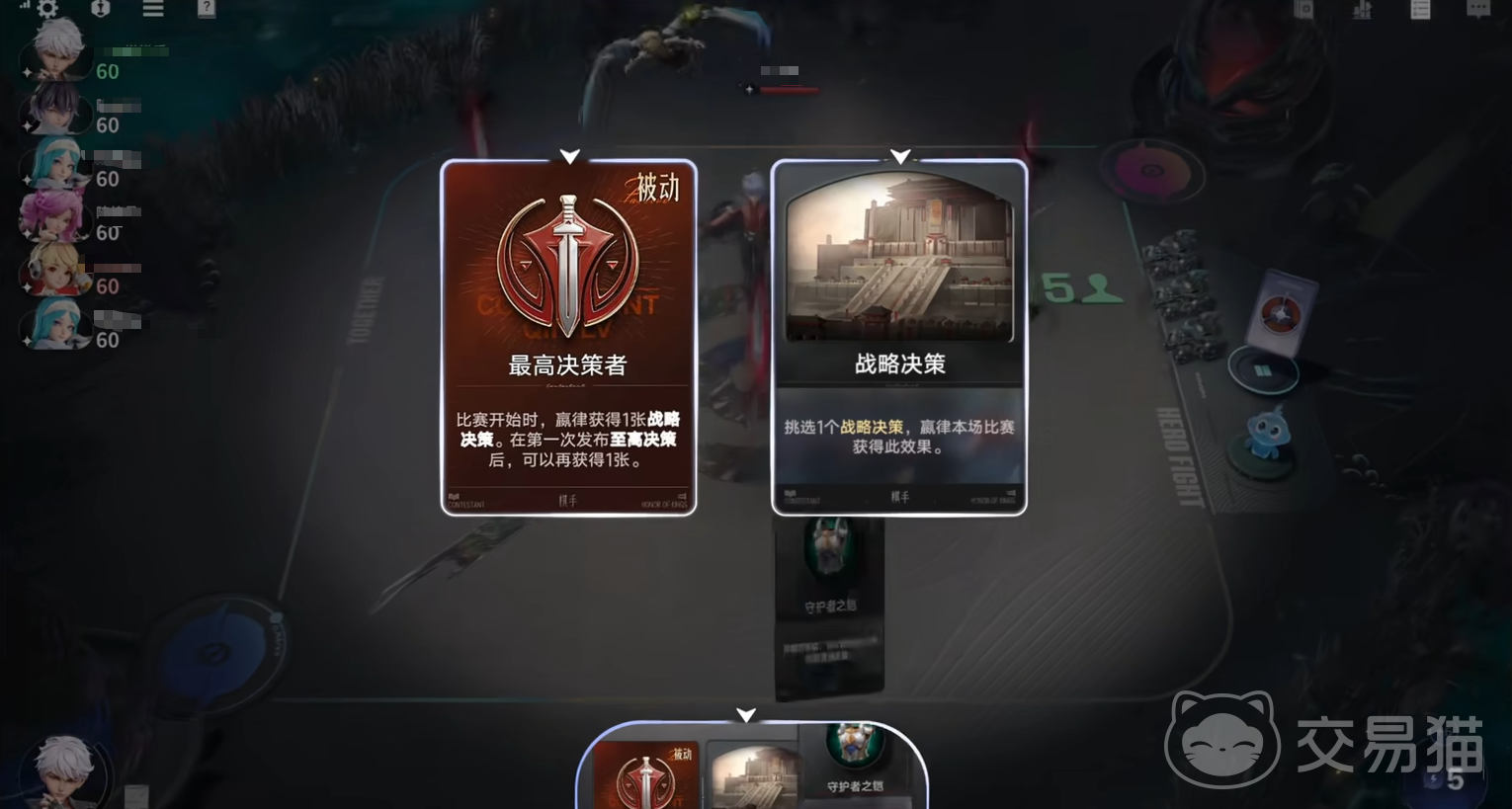 嬴律专属棋手技能名为“最高决策者”。对局初始即获得1张“战略决策”手牌,使用后可从若干随机选项中择一执行,效果全程生效,涵盖能量获取效率提升、经验转化率优化、己方英雄战力强化等关键维度;