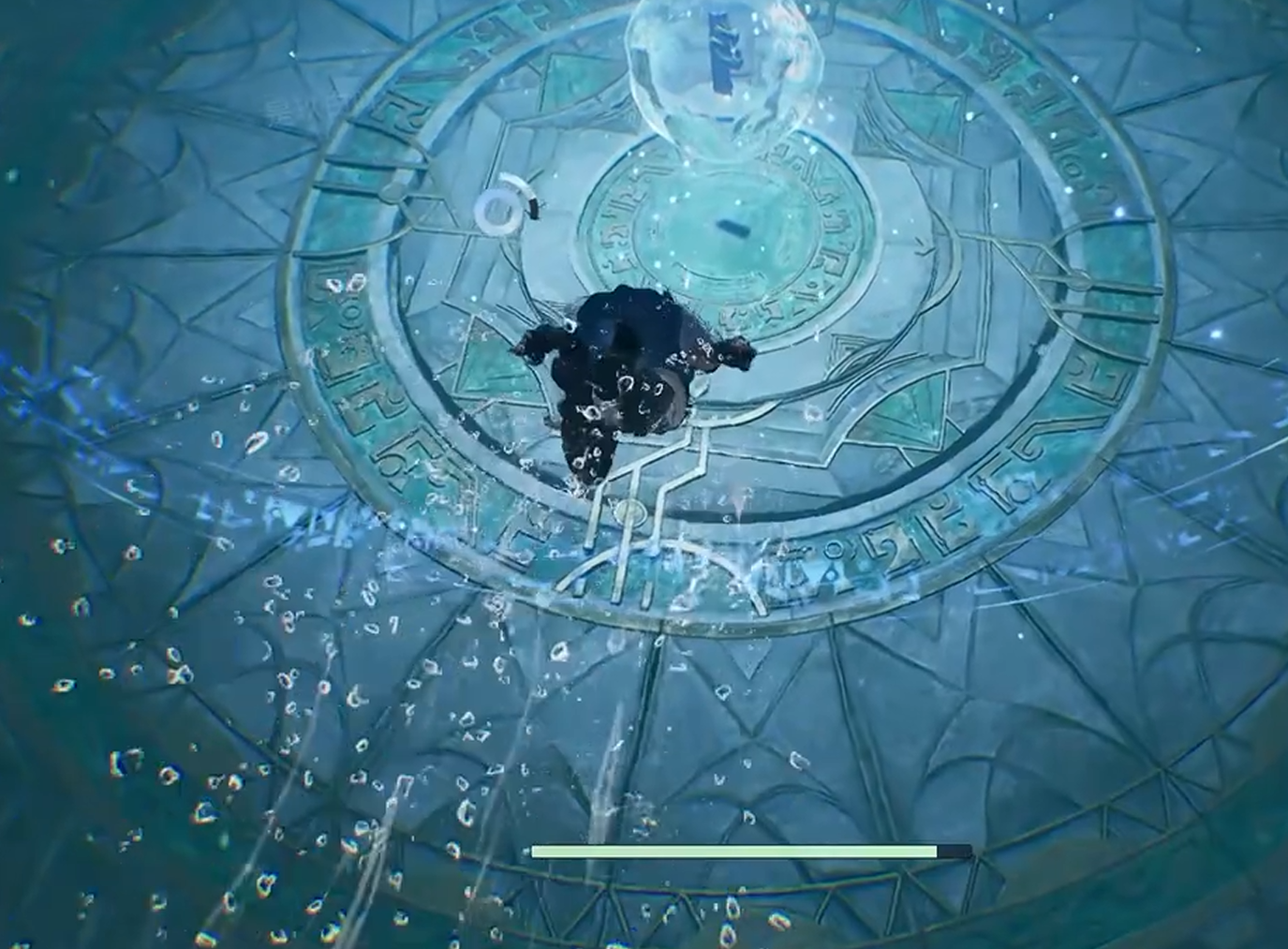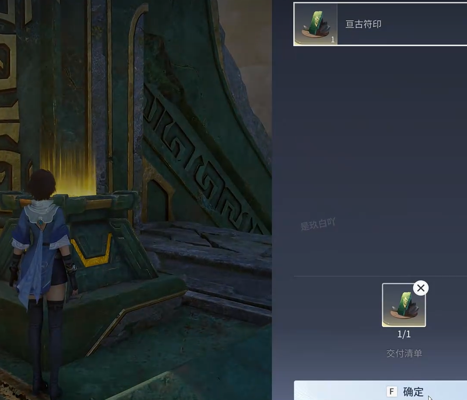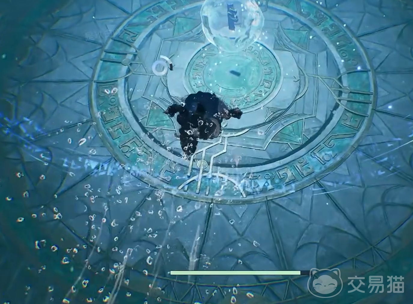 第三步:抵达核心交互点。水下视野受限时,建议微调镜头角度以提升辨识度。沿河灵轨迹持续下潜,约数秒后可见一座结构简洁但轮廓清晰的圆形祭坛,其表面附带蓝白色荧光纹饰,在昏暗环境中具有较强识别性。游至祭坛中心区域,会出现“交互”提示,点击即可领取亘古符印。