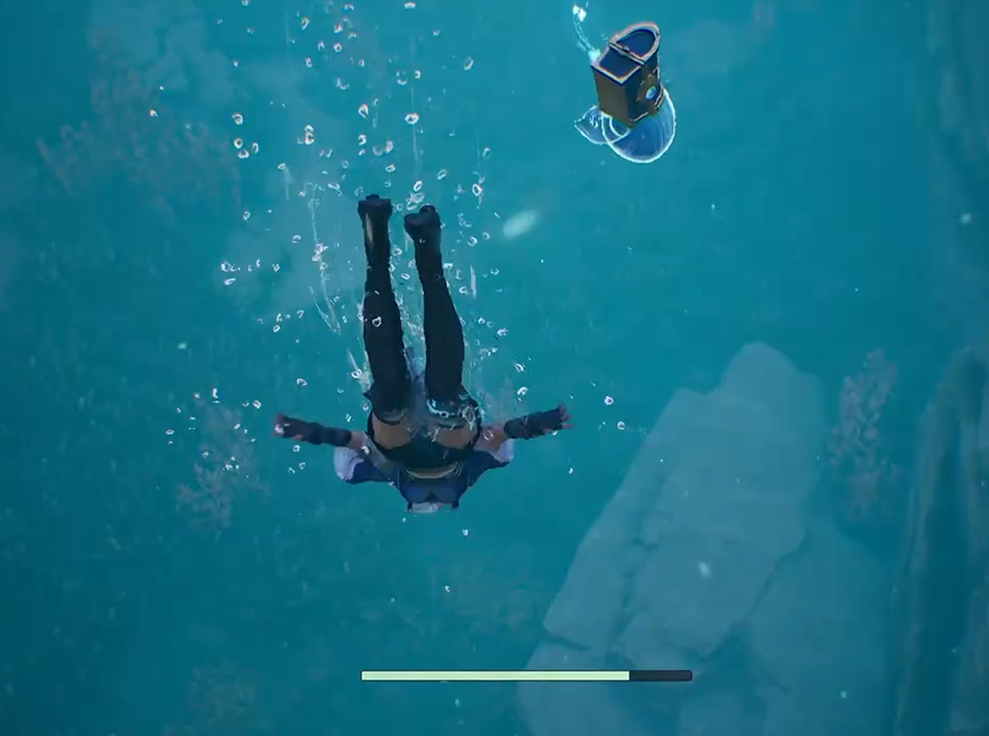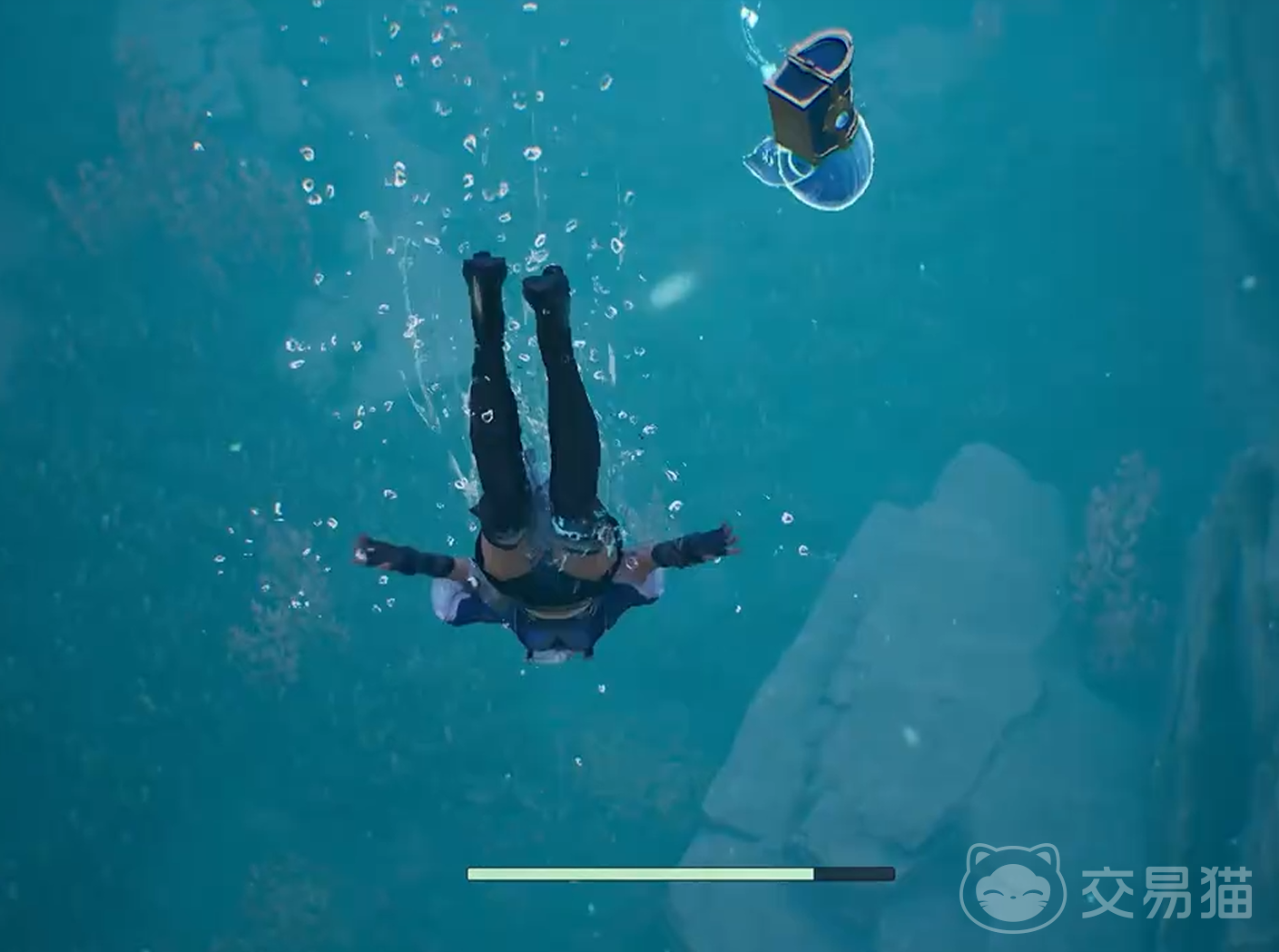 第四步:顺带收集隐藏奖励。获得符印后,无需立即上浮。转身面向祭坛背面,向后方游动约两米,可发现两个紧邻布置的宝箱。二者均为普通品质,内含金币、经验书或低阶材料,虽非任务必需,但属顺手可得资源,建议开启后再返回水面。