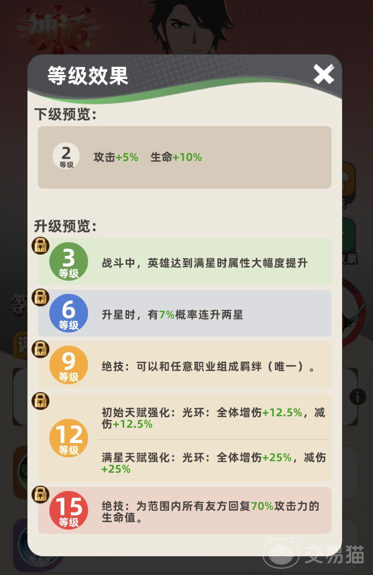 刘邦的主动技能可对范围内当前生命比例最低的友方单位施放治疗,具备极强的临场保核能力;被动天赋方面,初始即提供全队10%的增伤与减伤效果,三星满阶后提升至20%,显著提升阵容整体容错率与持续作战能力。在职业体系中,他既是帝王羁绊的关键拼图,也是多套主流阵容中公认的“万能辅助卡”。