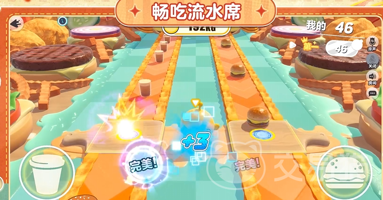 生存挑战关「畅吃流水席」:角色固定坐于双传送带中央,左右持续输送奶茶与汉堡。玩家需精准把握时机按键接取食物,操作过早或过晚均无法得分;随着进食量增加,蛋仔体型同步膨胀,依据实时积分排名决定晋级资格,积分前列者成为“最强干饭蛋”。