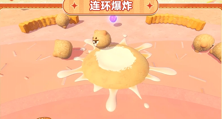 终极对决关「连环爆炸」:地图中周期性刷新萌系小熊泡芙,外观柔软香甜,实则为高能量触发装置。拾取或触碰后启动倒计时,若单颗泡芙撞击多个同类目标,将引发连锁爆炸反应。玩家需持续预判走位、及时规避冲击范围,坚持存活至最后者即为本场零食主题对决冠军。