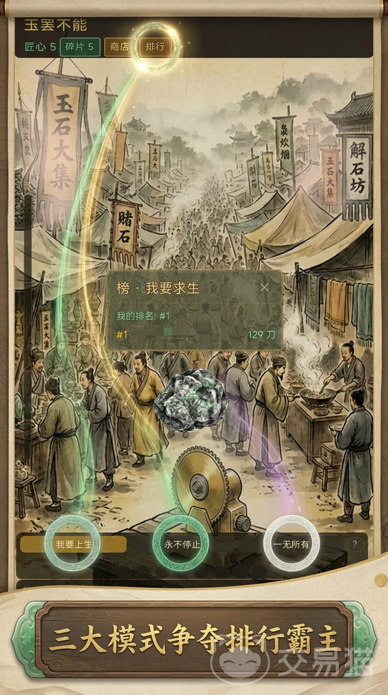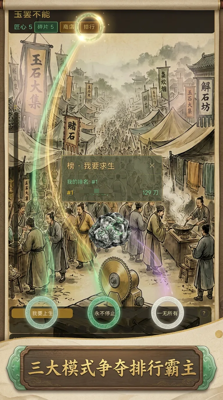 除单人模式外,游戏还设有三大竞技玩法模块,支持实时比拼切石效率与珍稀度。排行榜依据刀数完成量及所获玉石等级综合评定,上榜玩家将获得专属标识展示与实物奖励。失误操作可能导致成本损失,进一步强化了策略决策的重要性与沉浸感。