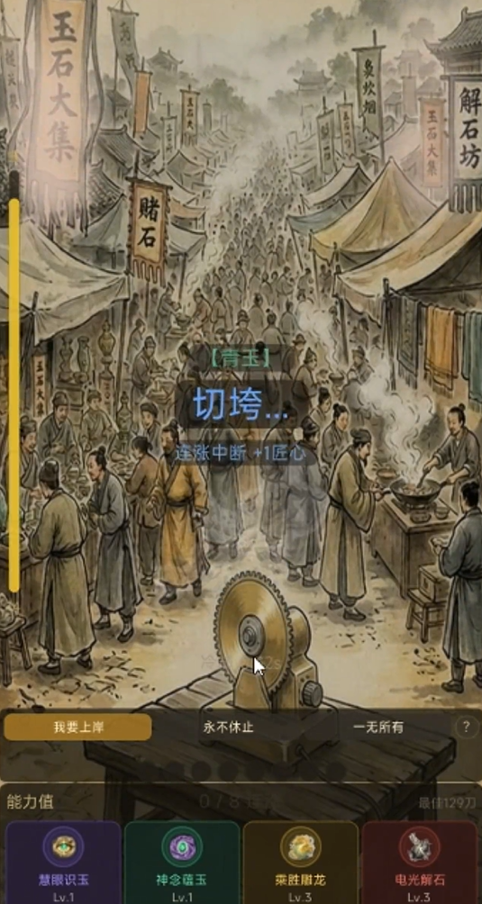游戏初期角色属性成长较为平缓,适合挑战基础品质的原石。随着经验积累与技能提升,玩家可逐步解锁更高价值的矿料类型。切石过程不仅依赖运气,更考验对纹理、皮壳、松花等关键特征的识别能力,精准判断有助于大幅提升高品质玉石的产出概率。