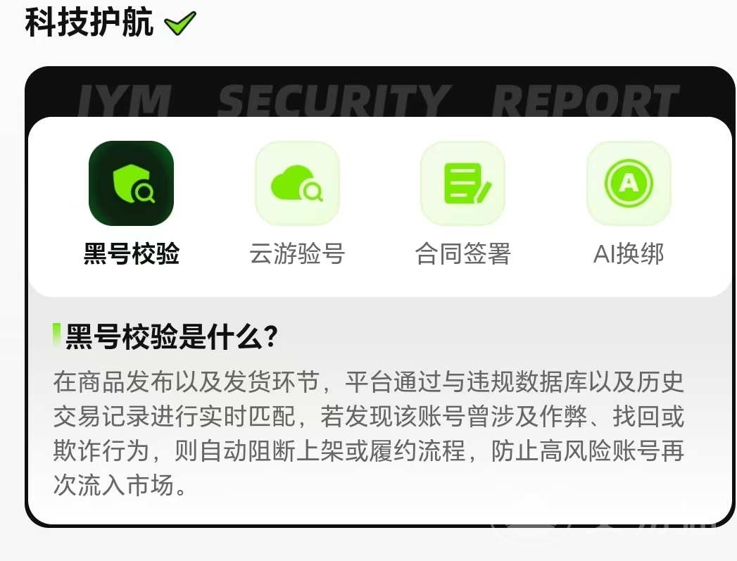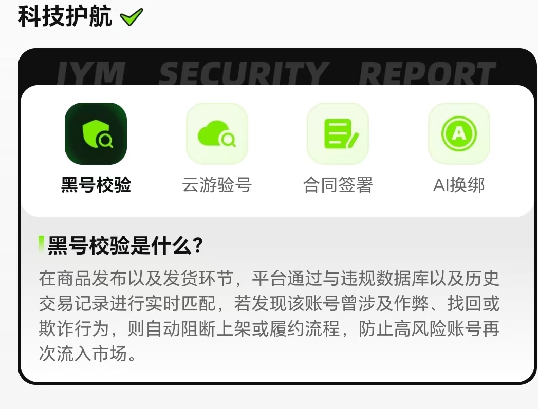 交易猫在风控环节做到了严格要求,平台拥有专业的验号团队会对账号的核心项目进行逐一核查,还通过科技进行黑号校验,如果账号曾经涉及到作弊、找回或欺诈的行为,将被阻断上架,高风险账号不会有再次流入市场的可能。而交易过程也采用资金第三方托管机制,有效地保障买家的利益,杜绝了钱号两空的风险。